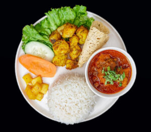 Skewered chicken BBQ marinated in a blend of himalayan herbs & spices